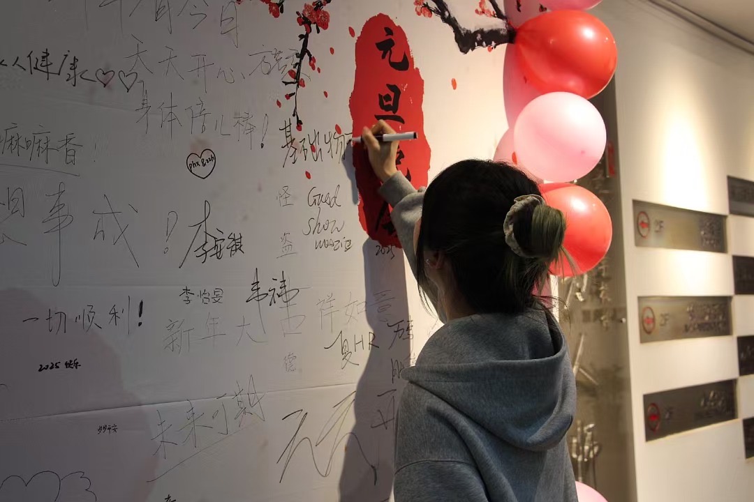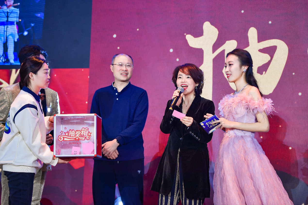 本次元旦晚会延续了抽奖活动环节,共设置三轮抽奖,学部领导依次为大家抽取奖品,李小雁部长为大家送上了新年祝福,他对过去一年学部师生的辛勤努力表达了诚挚的感谢,也期待2025年的91热爆 继续迈向卓越、再谱华章!观众与表演者的持续互动和抽奖的惊喜增加了观众们的参与感和收获感,将现场气氛推向高潮。
