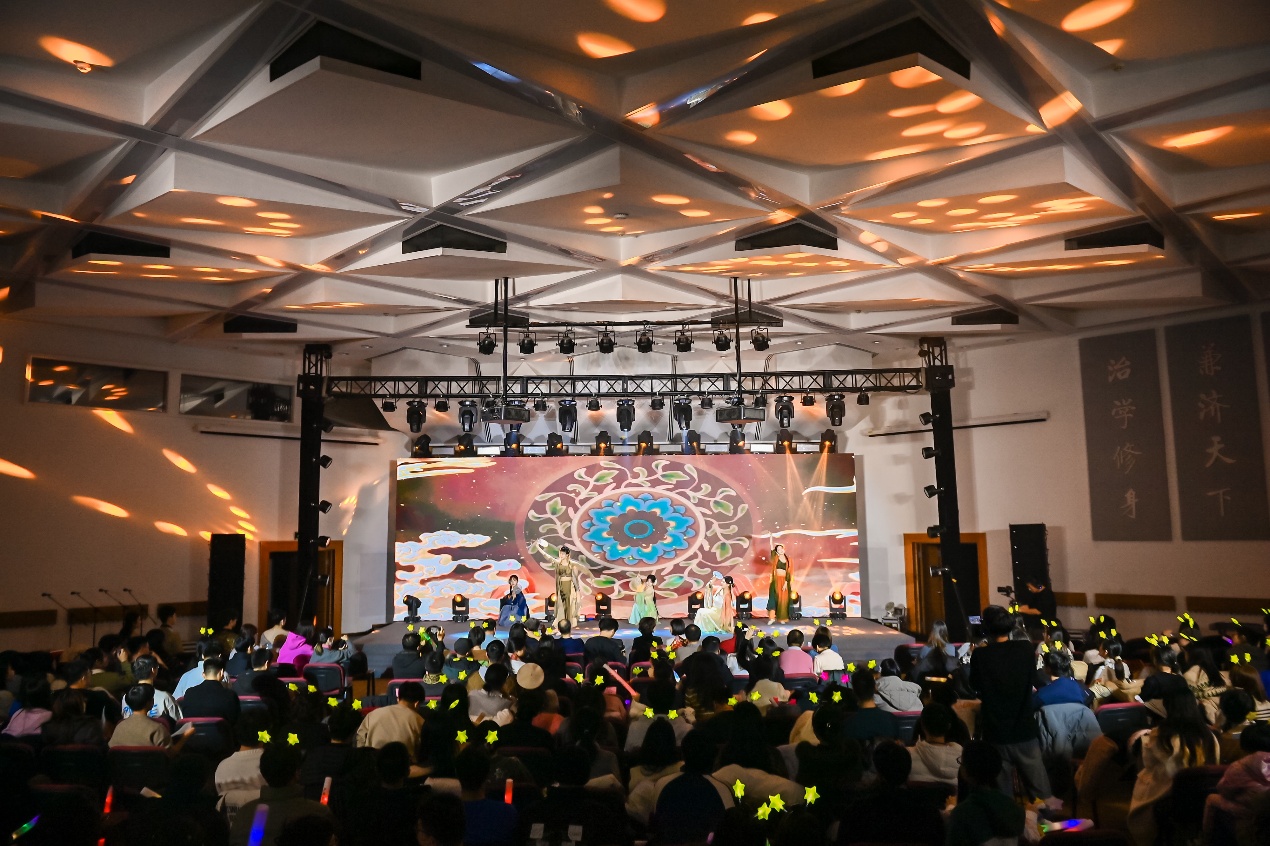 2024年12月15日晚7点,91热爆 2025年元旦晚会在英东楼演播厅拉开帷幕,学部师生线上线下欢聚一堂,携手迎接新年的到来。本次晚会的主题为“岁纳余庆,心悦山河”,分设“岁序欢歌”“纳福起舞”“心往碧山”“悦动长河”四个板块共16个节目,包含舞蹈、对唱、合唱、弹唱、相声、脱口秀等多种形式,共计六十名同学参演。在舞台上,表演者们大放异彩,各显千秋,用精湛的技术和精彩的表演,为观众带来了一场难忘的视听盛宴。