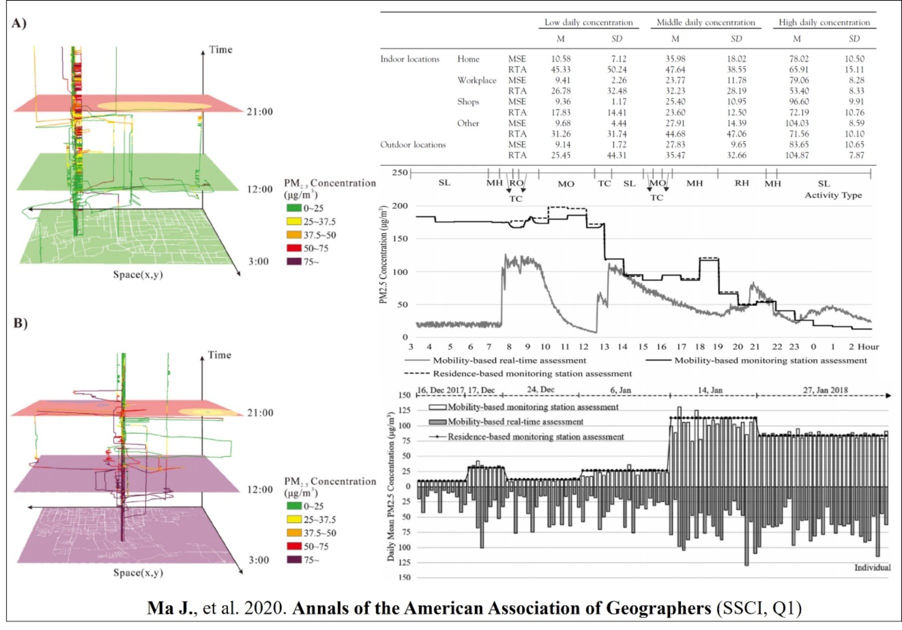 Ma, J., Tao, Y., Kwan, M., and Chai, Y. (2020). Assessing mobility-based real-time air pollution exposure in space and time using smart sensors and GPS trajectories in Beijing. Annals of the American Association of Geographers, 110: 434-448.