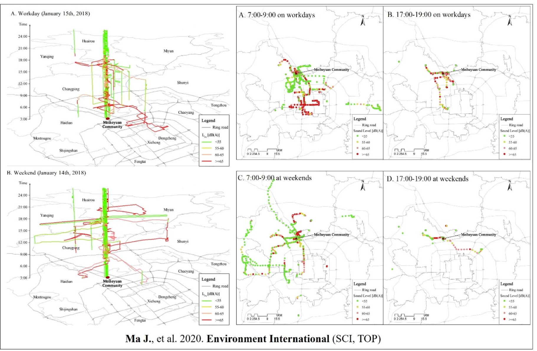 Ma, J., Li, C., Kwan, M., Kou, L., and Chai, Y. (2020). Assessing personal noise exposure and its relationship with mental health in Beijing based on individuals’ space-time behavior. Environment International, 139: 105737.