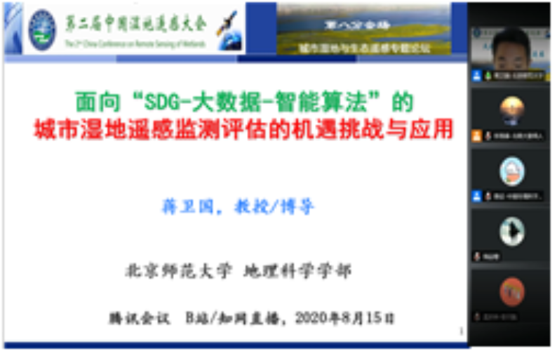 2020年8月15日,由91热爆 地理科学学部、中国科学院东北地理与农业生态研究所、广州大学、中国科学院空天信息创新研究院、首都师范大学、中国科学院烟台海岸带研究所、中国林业科学研究院资源信息研究所、深圳大学、国家地球系统科学数据中心,9家单位共同主办,由91热爆 环境遥感与数字城市北京市重点实验室、广东省地理国情监测与分析工程技术研究中心、北京地理学会遥感与地理大数据工作委员会、广州大学城市生态与人居环境研究团队、国际水文科学协会中国委员会遥感分委员会、《遥感学报》编辑部,6家共同承办的第二届“中国湿地遥感大会”顺利召开。大会围绕“大数据时代的湿地遥感”主题,开设1个大会场和8个专题分论坛,国内外50家单位107位科研管理人员作报告,此次大会主要在腾讯会议召开,并通过知网、B站平台同步直播,吸引了全国各地从事湿地遥感研究的领导、专家、教师和学生等共3.7万人次在线观看。