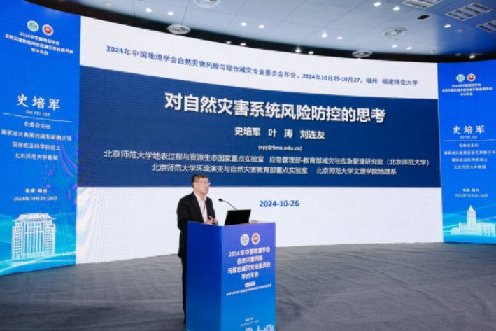 10月25—28日,2024年中国地理学会自然灾害风险与综合减灾专业委员会学术年会在福建师范大学成功举办,本次年会由中国地理学会自然灾害风险与综合减灾专业委员会(以下简称“专委会”)主办,我校应急管理部—教育部减灾与应急管理研究院与福建师范大学地理科学学院、碳中和未来技术学院共同承办。来自国内95所各大高校、科研院所的400余名代表参加会议。我校史培军教授作为专委会主任出席本次会议。