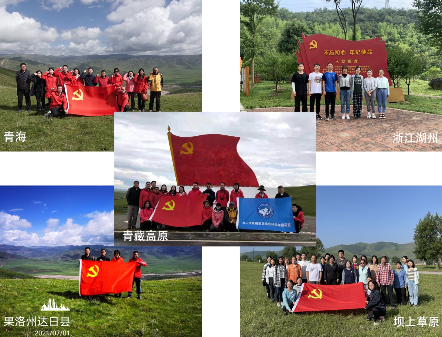 基于学科特点,此时学部部分师生已去往全国各地进行科研考察、实习实践。他们身在五湖四海、祖国各地,心系党的生日,在学部党委的组织下,通过多种方式庆祝党的百年华诞,为党送上生日祝福!苏筠书记带领在河北坝上进行综合自然地理、植物土壤实习的北京校区地理学部、珠海校区地理系的党员师生重温了入党誓词;鲁瑞洁等党员教师组织正在河北小五台进行地质地貌实习的党员师生重温了入党誓词,为庆贺党的生日送上祝福;潘峰华、朱青等老师带领人文地理与城乡规划专业本科生党员在浙江湖州市城市规划设计研究院举行了庆祝建党100周年重温入党誓词仪式;“冻融过程与土壤质量变化”团队正在开展青藏高原科考,途径当年长征路上的若尔盖草原、青海班玛县,吴秀臣等党员教师和团队党员师生一起在高原上重温入党誓词;正在龙羊峡开展野外考察的宋金平等党员教师为庆祝共产党百年华诞发来祝福。