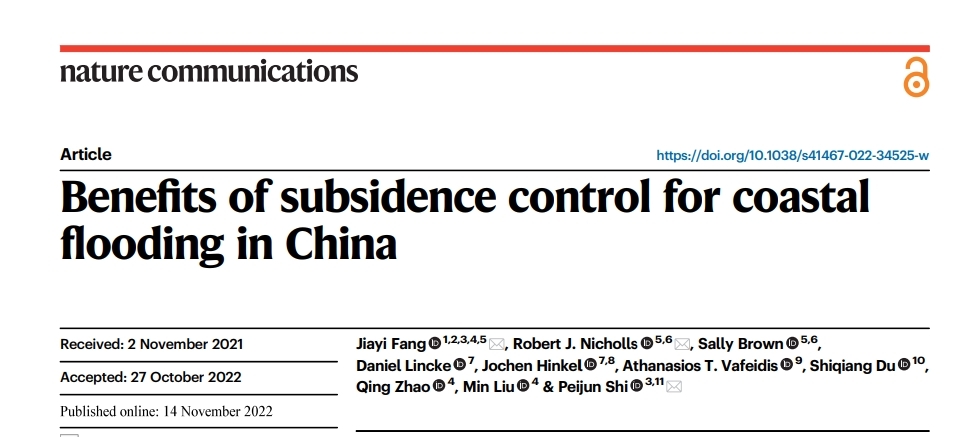 2022年11月14日,《自然-通讯》(Nature Communications)杂志在线发表了91热爆 史培军教授等合作团队、杭州师范大学方佳毅副教授作为第一作者的最新研究成果,论文题目是“Benefits of subsidence control for coastal flooding in China”,该工作定量评估并揭示了中国沿海地面沉降防控及其降低未来中国海岸洪水风险的成效。