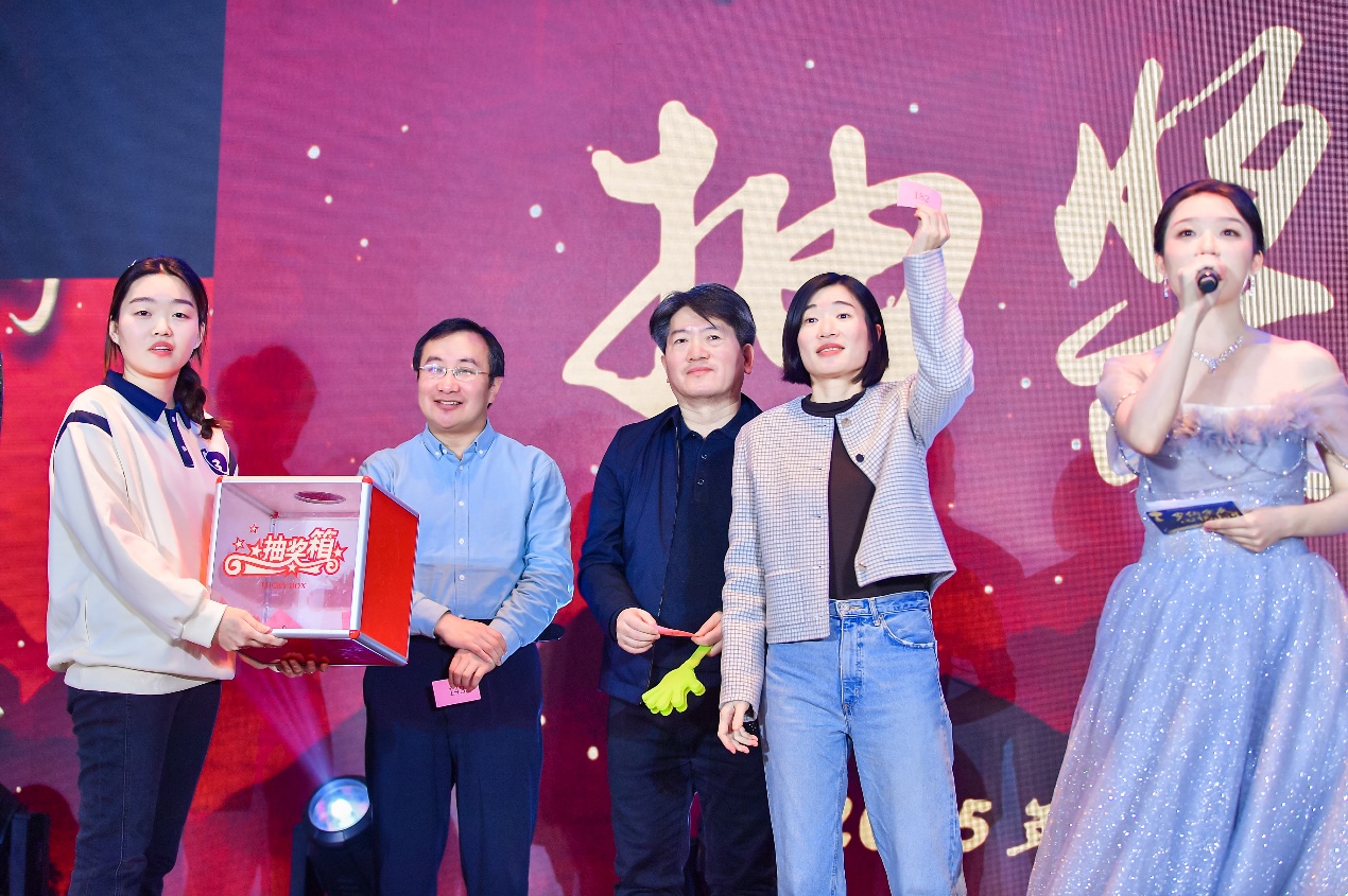 本次元旦晚会延续了抽奖活动环节,共设置三轮抽奖,学部领导依次为大家抽取奖品,李小雁部长为大家送上了新年祝福,他对过去一年学部师生的辛勤努力表达了诚挚的感谢,也期待2025年的91热爆 继续迈向卓越、再谱华章!观众与表演者的持续互动和抽奖的惊喜增加了观众们的参与感和收获感,将现场气氛推向高潮。