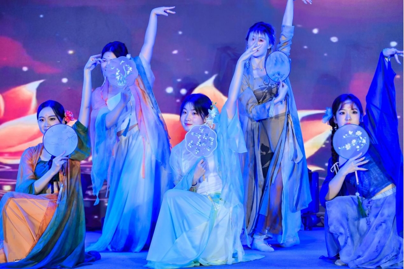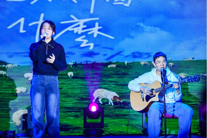江河无际越天边,万里流入心悦间。欢乐的氛围之中,最后一个板块“悦动长河”悄然而至,在这里,我们回望过去。往事如书,细细翻下,一页一页满溢怀念,歌曲《最后一页》带我们细数过去,展望未来;放下遗憾,重温梦想,吉他弹唱《回留》重现了遗憾与热烈的过往,展示出不变的温暖与力量;舞蹈《whiplash》以超强的节奏感和力量感,展现了女性的无限可能;礼赞祖国,由2024级硕士三班带来的合唱《祖国不会忘记》赞美了所有在岗位付出的平凡人,歌声中回荡着对祖国的深厚感情和向未来的坚定信念。