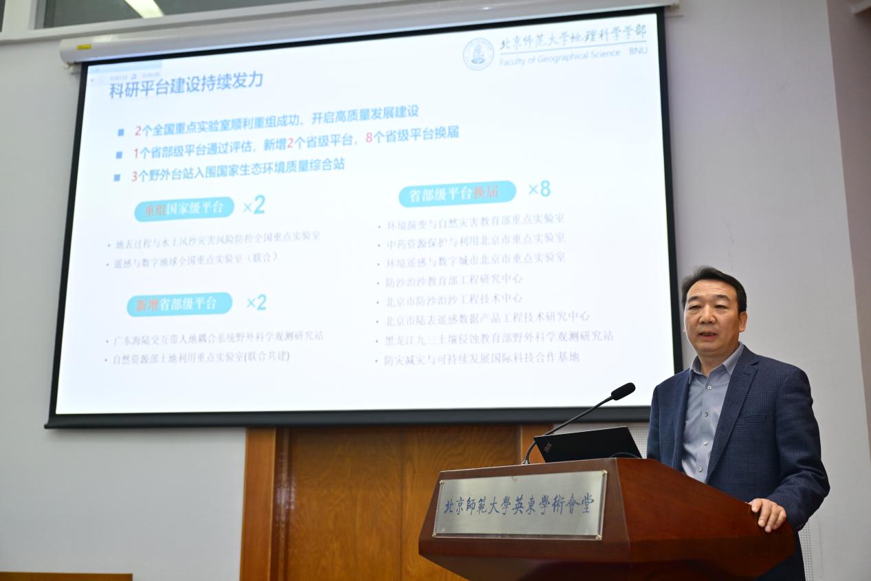李小雁部长代表行政班子述职并作个人工作汇报。李部长首先向学校考核组和全体教师汇报了学部在学科建设、人才培养、科研成果、国际合作、社会服务、队伍建设和内部治理的整体情况,并从工作顶层设计、基层走访调研、人才引育、科研推动与合作等方面进行个人工作述职。