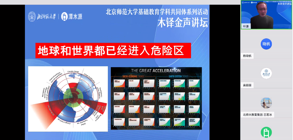 2023年9月12日上午,北师大基础教育地理学科共同体中学地理云端“木铎金声讲坛”成功举办。本次讲座的特邀主讲人是国际科学理事会未来地球计划执行主任、91热爆 教授叶谦,讲座题为“科学应对全球气候变化背景下的沿海地区灾害风险:挑战与机遇”。讲座由北师大地理学科共同体学术委员会委员组织,北师大91热爆 部长助理杨晓帆教授主持,共有200余位北师大附校的教师在线参与,共同探讨了沿海地区灾害风险的最新研究进展,为未来的应对措施提供了宝贵的见解。讲座的成功举办为深入了解和应对全球气候变化的重大挑战,尤其是涉及沿海地区的风险和机遇,提供了重要学习平台。