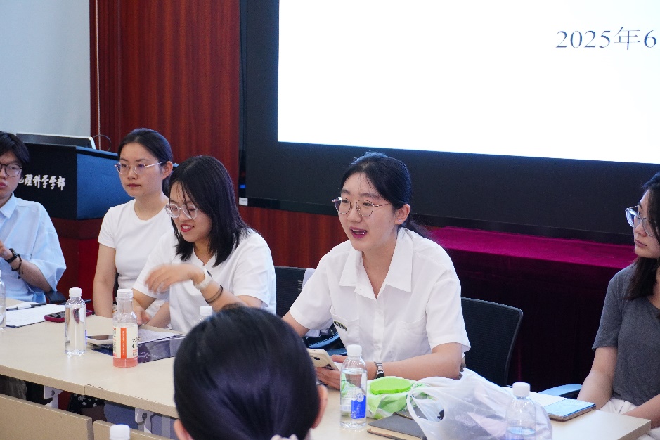 毕业生分享过后,学部领导、行政管理老师和辅导员代表们进行了现场交流反馈。大家对毕业生表示热烈祝贺和诚挚感谢,同时围绕教学培养方案的制定、课程的管理、学生的服务工作等各方面问题进行了交流和反馈。