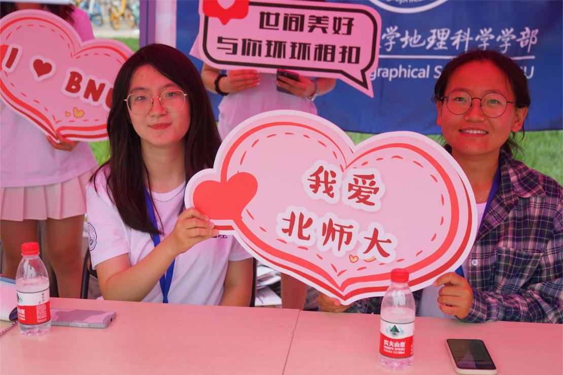 整个迎新仪式最引人注目的还属这张“地理迎新墙”啦!来自五湖四海的新生们纷纷在自己的家乡所在地签上了自己的名字,他们代表着自己的家乡,展现着各自的风采。萌新们热情地邀请自己的家人合影一张,手持“BNU地理人”、“未来可期”、“我爱北师大”等等标语,表明了对未来的期待,开启生活新篇章。
