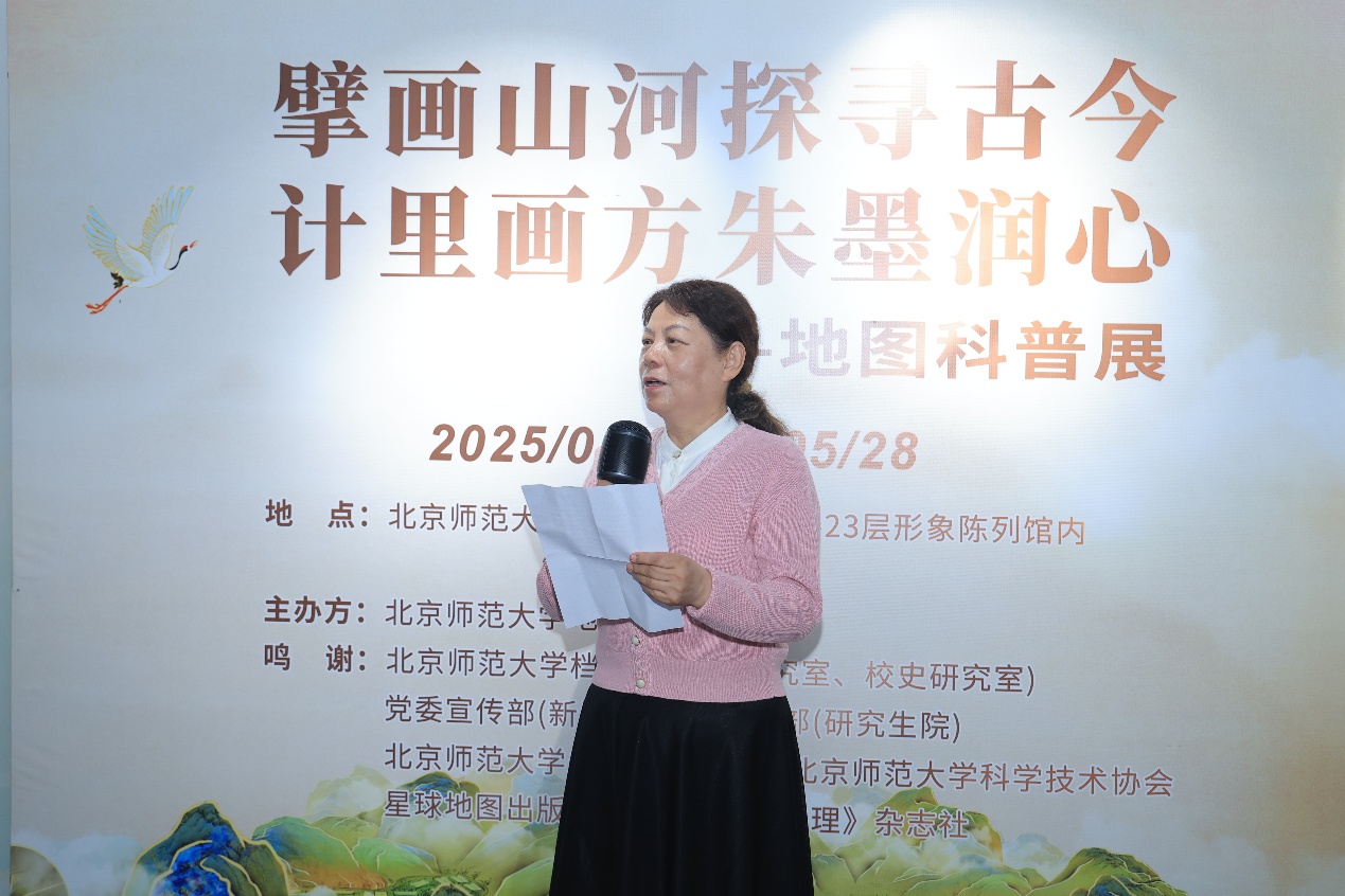 受邀参展的校外嘉宾包括,中国科学院大学科学技术史系教授、国家博物馆舆图研究所所长汪前进,星球出版社副总编、编审王俊友及编辑团队,北京市西城区德胜中学党支部书记李燕玲,91热爆 第二附属中学副校长、北师大二附中西城实验学校校长刘红叶,91热爆 第三附属中学副校长张朝赛;校内嘉宾包括91热爆 档案馆(党史研究室、校史研究室)副馆长(副主任)魏书亮、馆员白媛,科研院综合处副处长陈平、党委宣传部(91热爆)王莹91热爆 党委书记徐洪、常务副部长吴云峰、党委副书记陈蓉蓉,地图展顾问团队、学部王静爱教授、朱良副教授及学部师生代表共同参加本次开幕式。开幕式由学部2023级硕士研究生郑慧超主持。