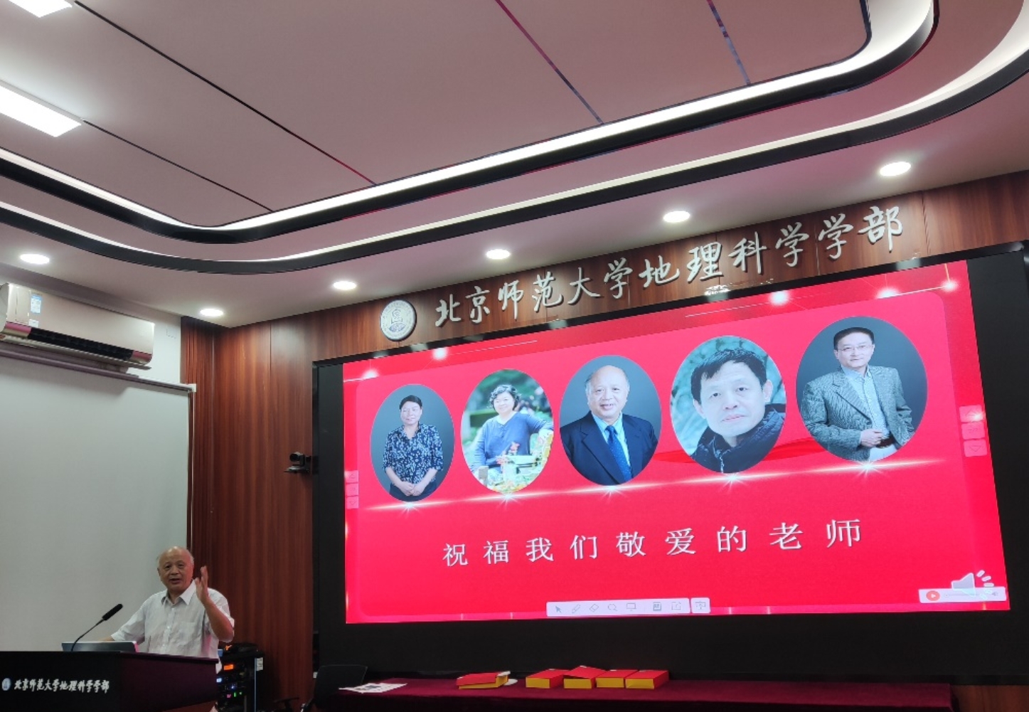其次,由张科利院长主持了学院近年来退休教师的荣休仪式。此次参加荣休仪式的退休老师共有五位,分别是王静爱老师、李京老师、马玉贞老师、梁进社老师和朱良老师。在荣休仪式上,张科利院长为每位退休教师颁发了荣休纪念品,由学院教师代表为荣休的老师们献上美丽的鲜花并合影留念。之后,五位退休老师逐一发表了退休感言,表达了对学院举办荣休仪式的感谢,并表示退休后依旧会关注学院的发展,继续贡献自己的力量。