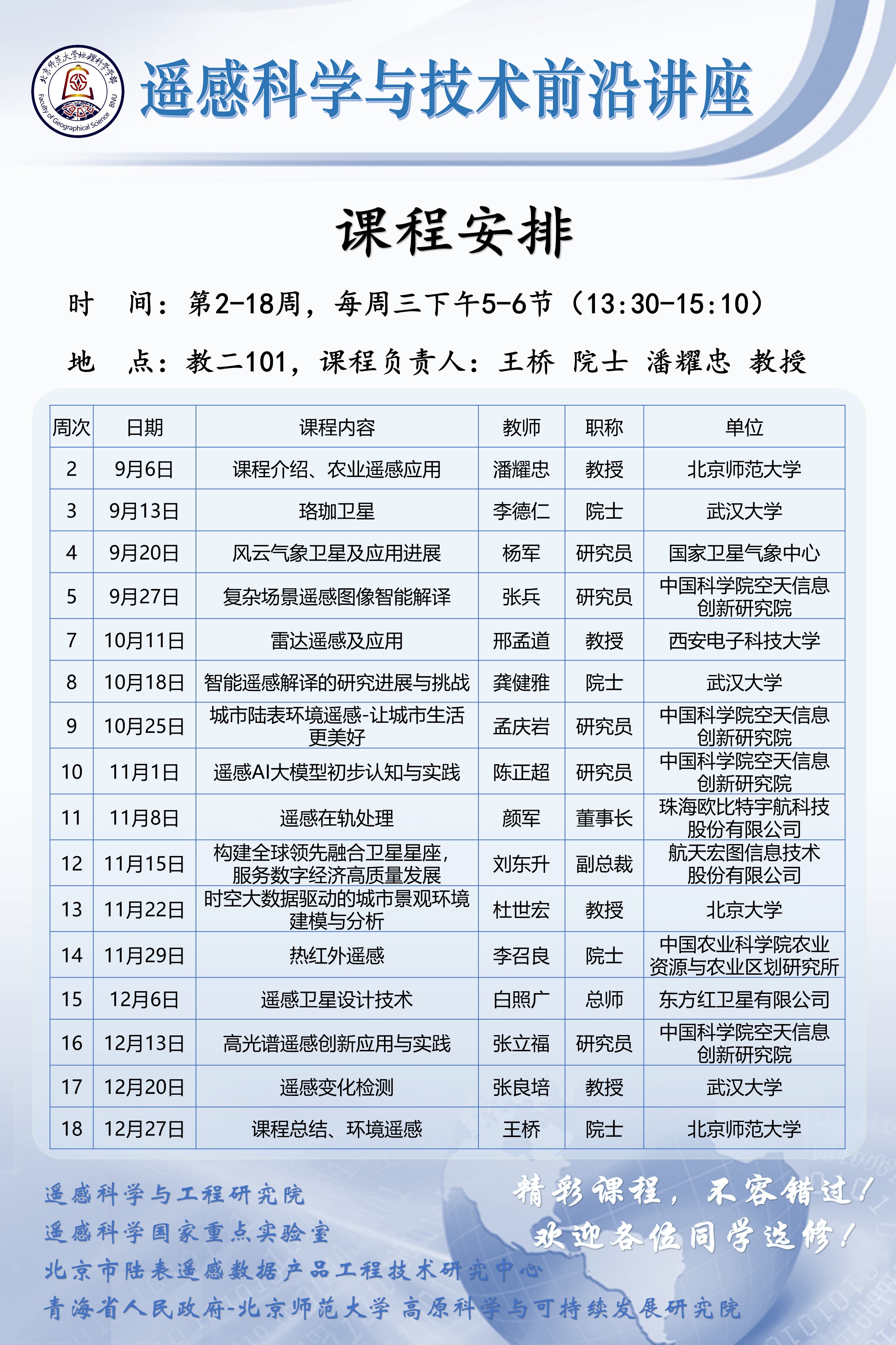 【9月06日】遥感科学与技术前沿讲座(2023)---欢迎选修!